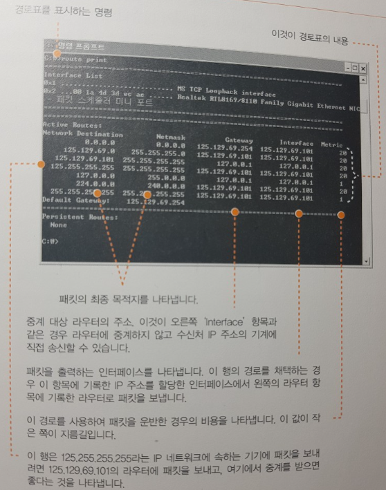 - IP 담당 부분은 경로표에서 ‘GateWay’ 항목의 값에서 패킷을 건네줄 상대를 판단한다.