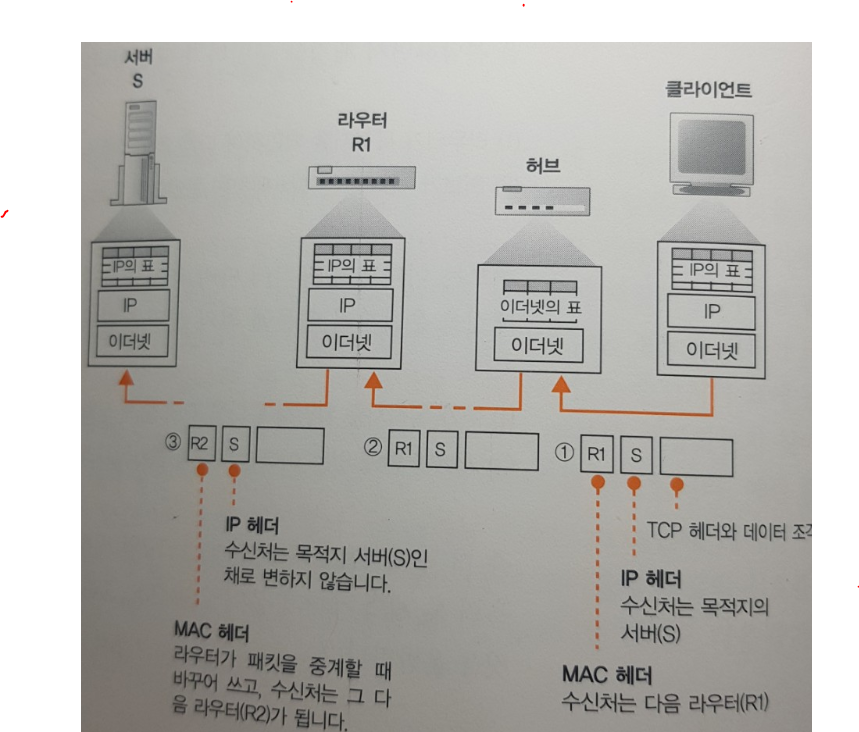 - IP가 목적지를 확인하여 다음 IP의 중계장치를 나타낸다.