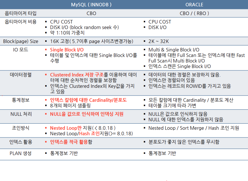 - 테이블 변경이 많거나 사용자가 Analyze Table 명령을 수행하는 경우 통계 정보 갱신