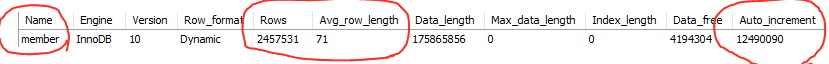 SHOW TABLE STATUS WHERE NAME LIKE '테이블이름';
