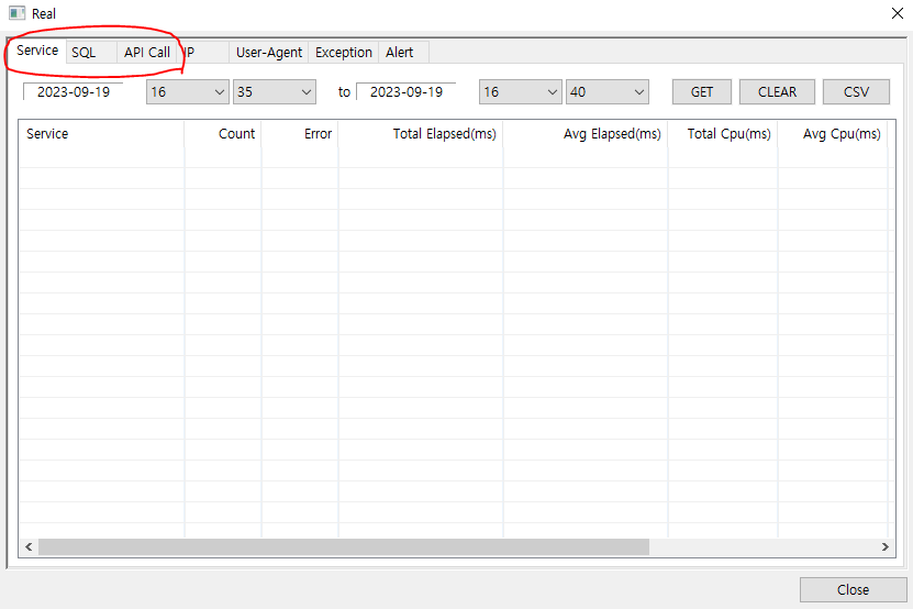 보고싶은 탭을 선택후 날짜선택 후 GET을 누르면 아래와 같이 나온다.