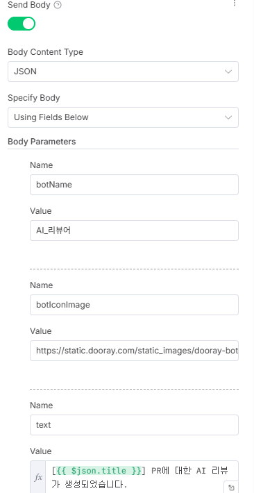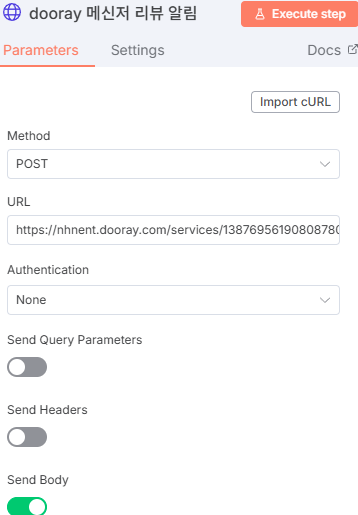 HTTP Rqeust 노드 - 두레이 메신저