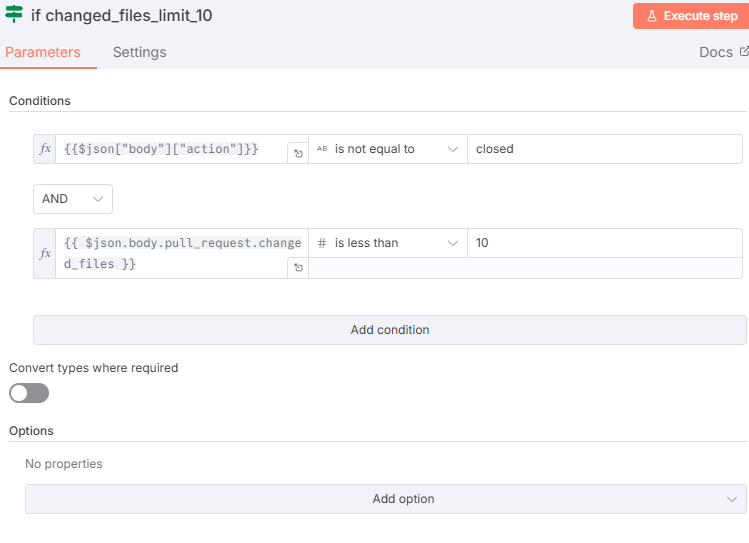 예전에는 IF 노드가 없어 PR이 closed 상태여도 플로우가 실행되었습니다.