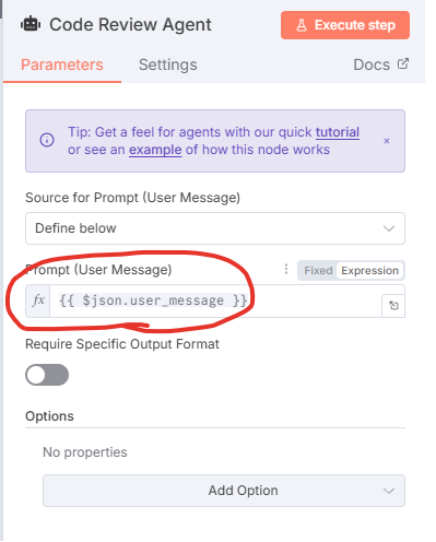 diff와 리뷰 지침을 결합해 AI 노드에 넘길 프롬프트를 생성합니다.