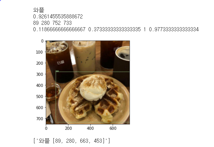 파이썬을 이용하는 다른 플랫폼에 적용시키기 darknet에서만 사용하는 것이 아닌 라즈베리파이, 웹사이트, 모바일 등에 적용할 수 있다. 준비물은 3가지이다. CFG 파일 훈련된 weight 파일 names 파일 라이브러리와 YOLO 로드 import cv2 import numpy as np from matplotlib import pyplot as plt net = cv2.dnn.readNet("yolov4_19000.weights", "yolov4.cfg") #CFG 파일, weight 파일을 넣어준다. classes = [] with open("food30.names", "rt",encoding = "UTF8") as f: #클래스 이름을 따로 저장해준다. 이 형식은 클래스가 한글이름 일 때 불러오..