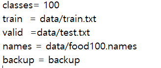 YOLO를 훈련시키려면 필요한 3가지 데이터가 있다. 1. data 2. cfg 3. weight 1. data 만들기 data는 이런 형식을 가진다. classes는 훈련하려는 객체 개수 train은 훈련에 사용되는 이미지의 경로 valid는 평가에 사용되는 이미지의 경로 names는 객체의 이름 backup은 훈련된 weight를 저장하는 경로이다. 좀더 자세히 살펴보자면 data의 하위폴더에 txt와 names 파일이 존재한다. 이 파일들의 형식은 다음과 같다. 여기서 주의할 사항은 폴더경로를 잘 설정해줘야한다. train.txt에서 경로/번호/음식사진.jpg 로 설정되있다. 즉 번호에 names의 index와 같은 음식 사진이 들어가야한다. 위를 예로 들자면 names의 첫번째 index가 밥 -..